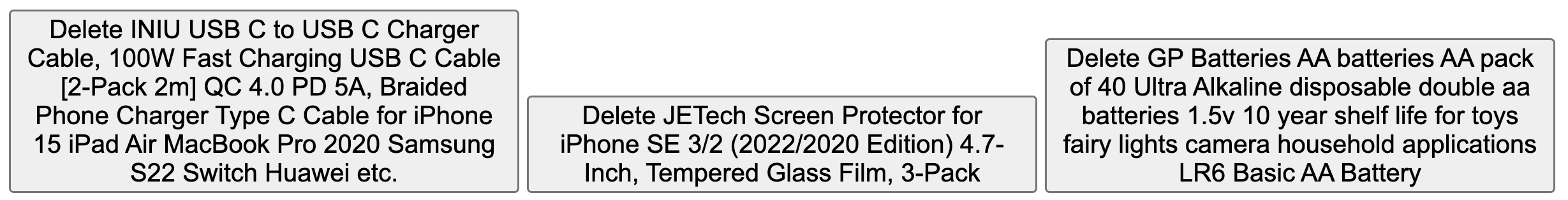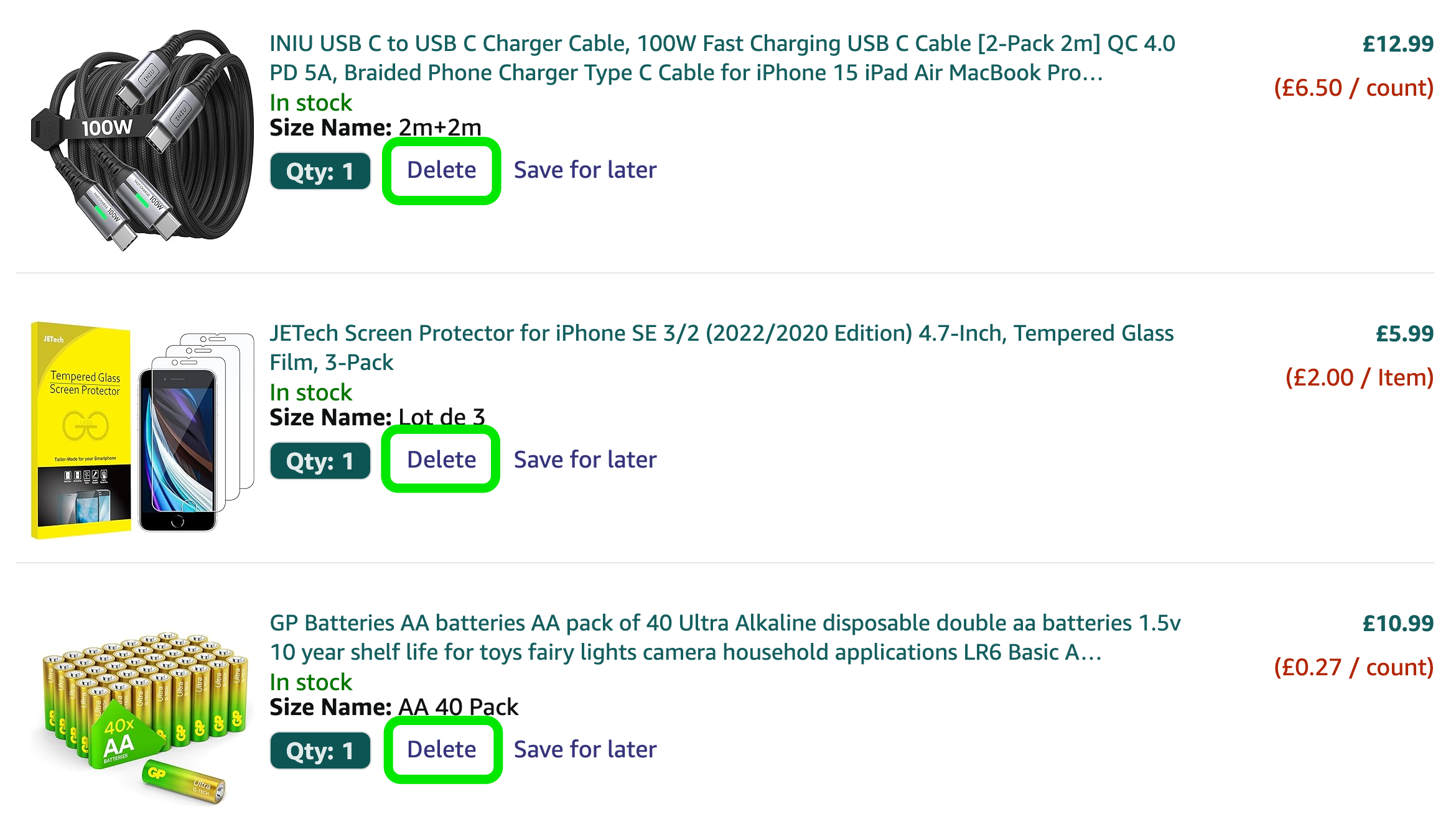 - “Delete, button” … short pause … “GP Batteries AA batteries AA pack of 40 Ultra Alkaline”