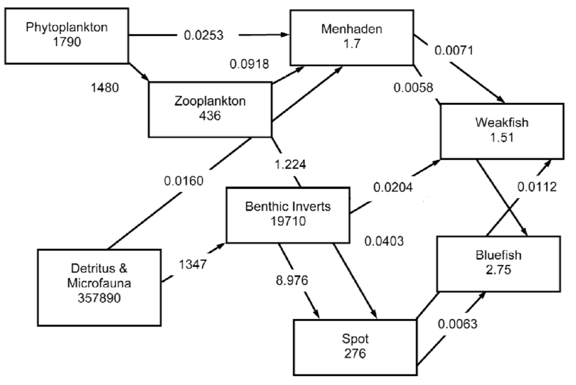 With this image we have a … you know what? I have no idea what this is all about. Something to do with aquatic organisms and how they relate to each other. Lots of directional arrows, numbers and species names. It probably means something to a marine biologist, but to me? Pffff!
