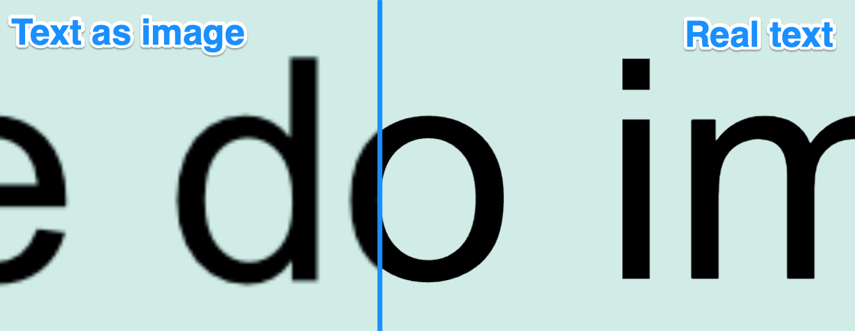 It’s worth reminding ourselves why this is better as real text—after all, this is the whole reason for SC 1.4.5 Images of Text—as we compare the real text zoomed up compared to the bitmap image version: