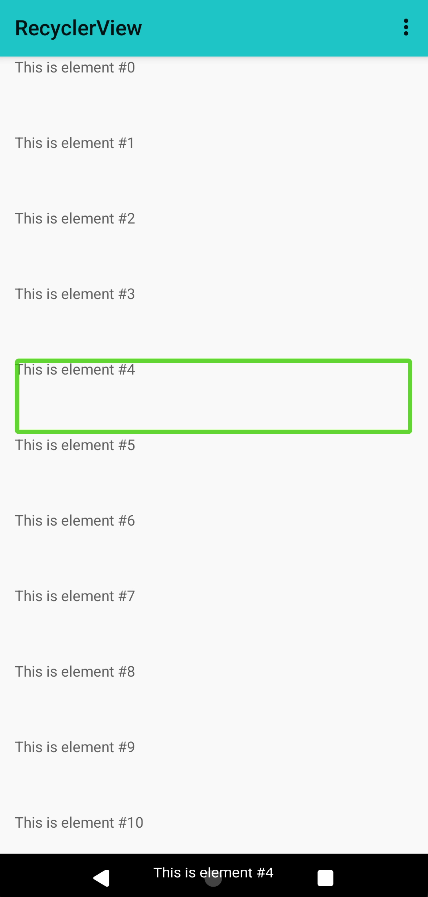 The output of this is similar to the previous examples except the RecyclerView adds list semantics. So on top of announcing as a “Button”, it also announces the index of the button in the list.