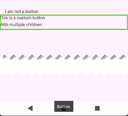 As the image above shows, the onClick doesn’t do anything, but TalkBack will announce this as “I am not a button. Double tap to activate” because there is an OnClickListener provided. Users should not have to rely on the “Double tap to activate” announcement to provide any concrete information on the role.