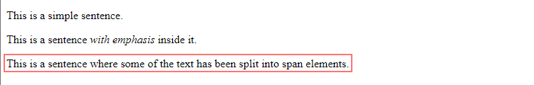 <p>This is a sentence <span>where some of the text</span> has been <span>split into span elements</span>.</p>