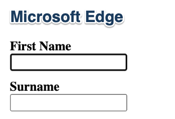 Comparison of three browsers’ inputs showing the default focus style and the unfocused default