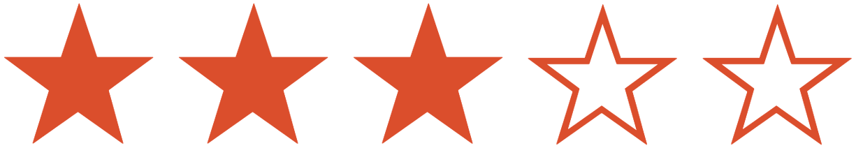- The addition of the text “3 out of 5 stars” does mean that even if the stars cannot be perceived by some people, there is an alternative that is clear to read (passes SC 1.4.3 Contrast (Minimum) and can be scaled because it’s real text (so no SC 1.4.5 Images of Text failure, either).